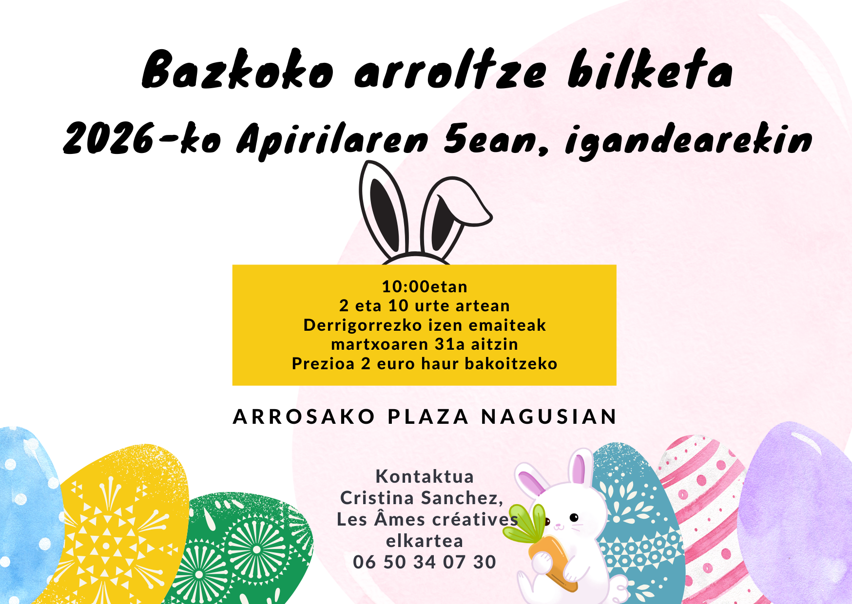 Les Ames Creatives elkarteak arroltze bilketa antolatzen du 2026ko apirilaren 5ean, igandez, 10:00etan, Arrosako Exabe plazan.